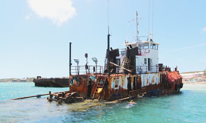 The seriously corroded vessels – one tug-boat and two barges – have become an eyesore for Exumans and visitors alike.