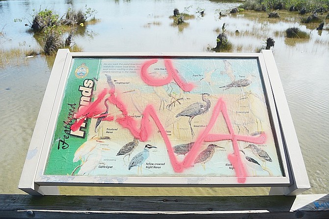RESIDENTS of the Pride Estates West community and representatives of the Bahamas National Trust said they are working to restore the area’s $15,000 boardwalk after vandals left the “peaceful retreat” covered with obscenities and suspected gang tag lines.