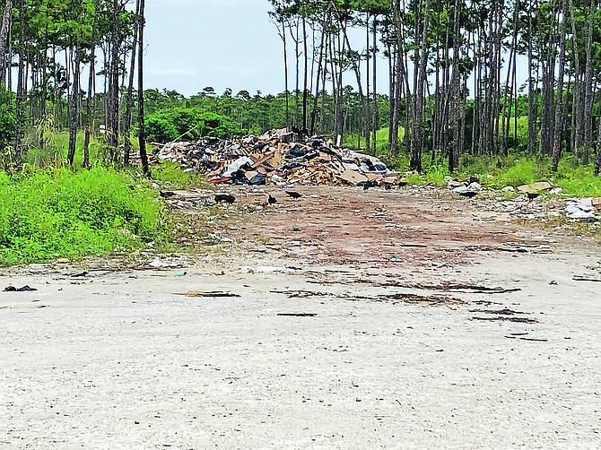 A long-neglected dump site in Cherokee Sound, Abaco, is sparking growing frustration among residents who say piles of construction debris are now nearly spilling onto the highway.