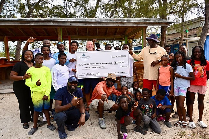 The praise came from National Sailing Committee chairman Dallas Knowles as the man he honoured, Exuma resident and developer Bob Coughlin, was presenting a cheque for $20,000 to a local boat builder in Black Point, Exuma, to complete work on three E-class native sloops.