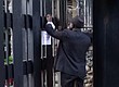 Deputy Provos Marshal of the Supreme Court Tommy Sands posts the court notice on the gates of Nygard Cay.