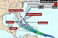 Projected WInd Gusts & Time of Arrival for Potential Tropical Storm